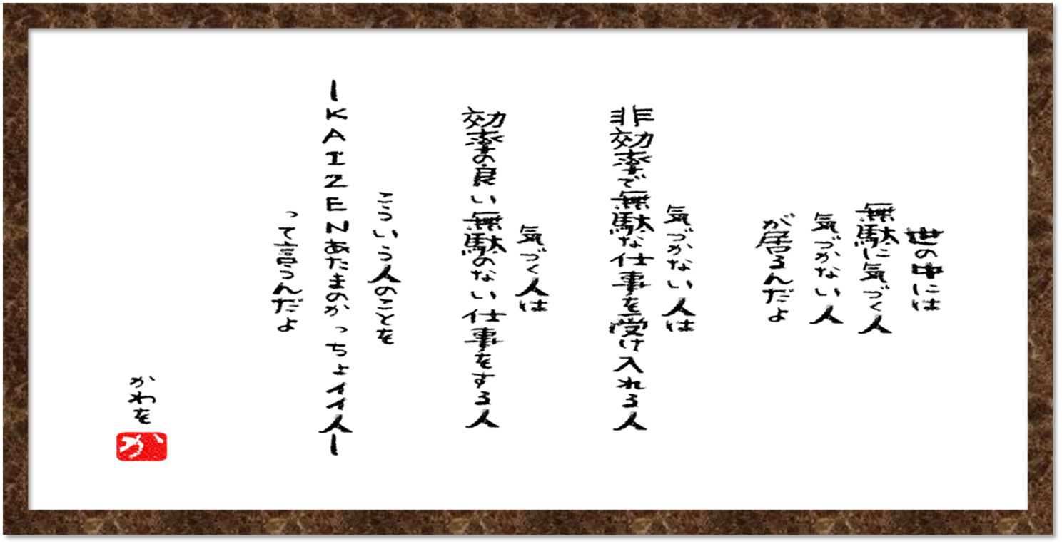 KAIZENとは、業務においてのムダを手間やお金をかけずに、より簡単な方法を追求し省くことです。